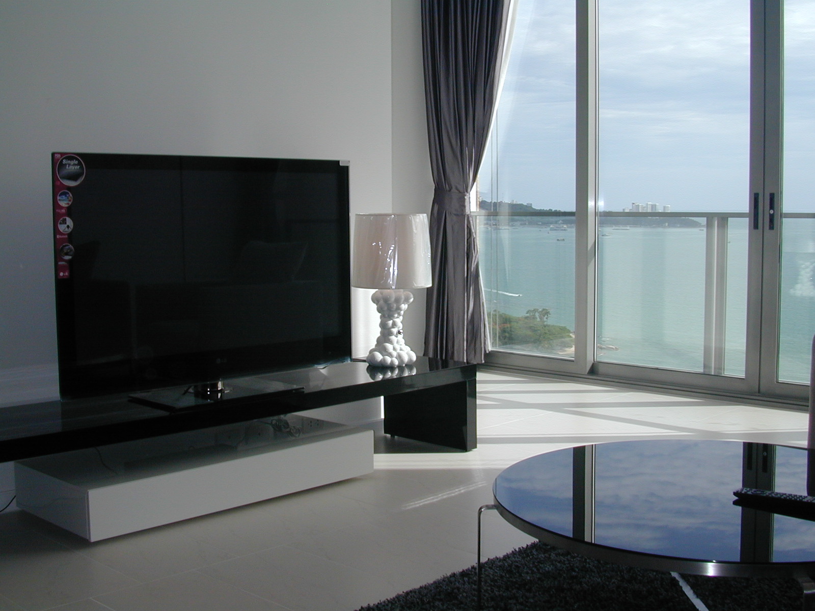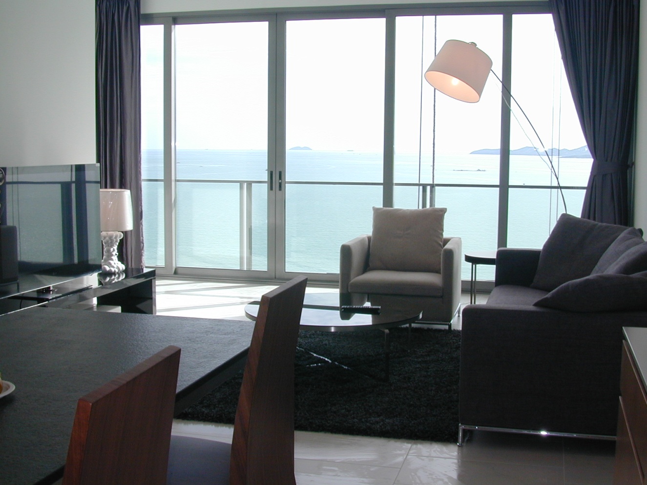 Luxury seaview 2 bedroom apartment right at Wongamart Beach ,105 sqm., 2 bathroom, living room, European kitchen, high quality equiped & furnished. Fitness & pool at sky garden, tennis court, beautiful lanscaped. For rent 75,000 baht/month(1 Year contract required).