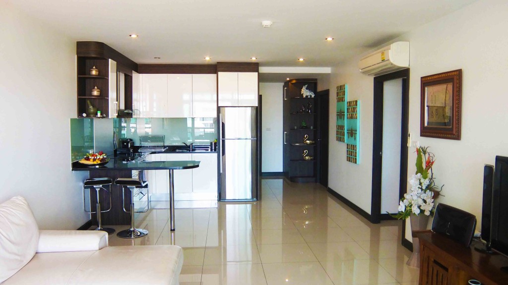 Large 2 bedroom condo for rent in Siam Ocean View on Pratumnak Hill. The condo is built to high European standards with double insulated walls, PVC windows and doors with double glazing, living space 95 sqm., 2 bathroom, living room, European kitchen with ceramic hob, extractor fan and granite countertops, fully furnished, large balcony. Ready to move into. For rent 45,000 baht/month (minimum 6 month contract). Neg. for long lease contract.