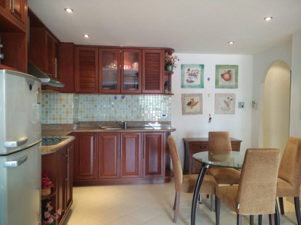 lovely one bedroom condo for sale. Located in Viewtalay Condominium 2B, Tappraya Rd., Jomtien Beach, 24 hrs baht bus, great security, large common pool, medium floor , shadow side, 74 sqm., 1 bedroom, 1 bathroom with shower, nice living room, fully fitted European kitchen, full furnished, full of storage build in furniture , flat TVs, washing machine. Ready to live in. For sale 3,500,000.-THB. Company ownership.